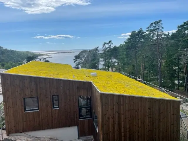 Ved anleggelse på hus og hytter i områder hvor det kan være mye snø er det ekstra viktig og planlegge ankring av sedum i kassett. Ta kontakt med oss for mer hjelp.